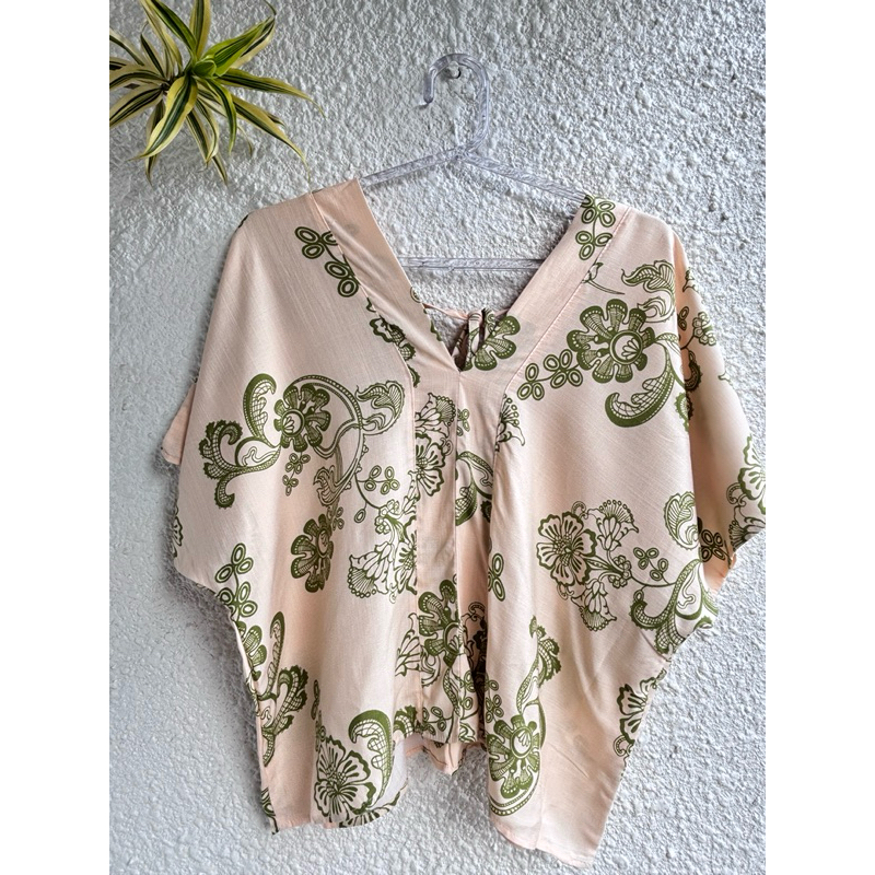Blusa feminina manga curta estampado gola v tecido viscose C5