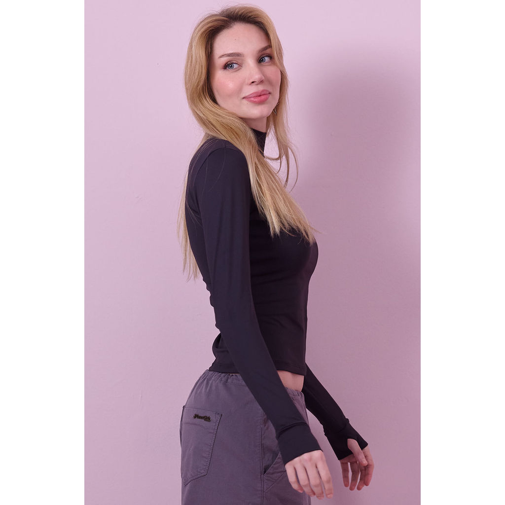 Blusa Feminina Manga Longa Com Dedeira Planet Girls Preto