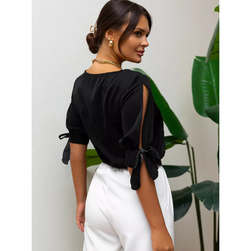 Blusa Feminina Manga Transpassada Moda Evangelica Social Tendencia Manga 3/4 Crepe Duna