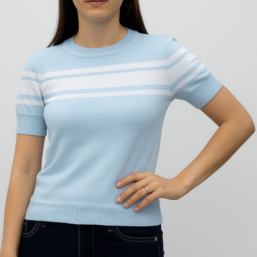Blusa Feminina Modal Listras Casual Manga Curta Fresquinha Leve Versátil Elegante Moda Tendência