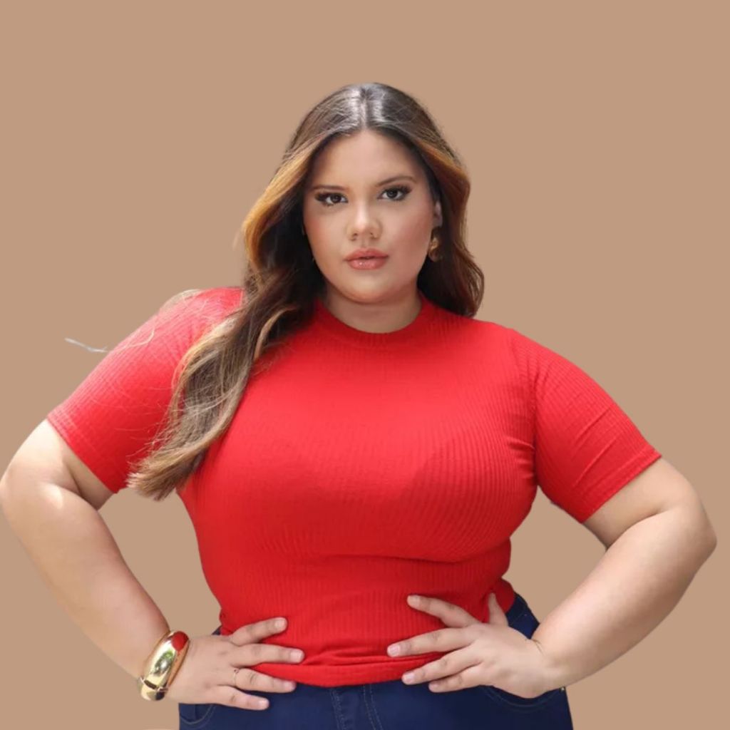 Blusa Feminina Plus size Canelada Premium Gola Alta Camiseta Premium Estilosa Malha Elegante Festa