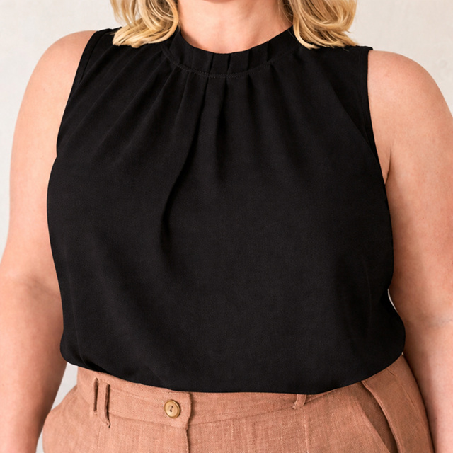 BLUSA FEMININA PLUS SIZE ELEGANTE REGATA GOLA ALTA TECIDO DUNA MODA EVANGÉLICA CONFORTÁVEL DO GG AO G2 TENDÊNCIA 2
