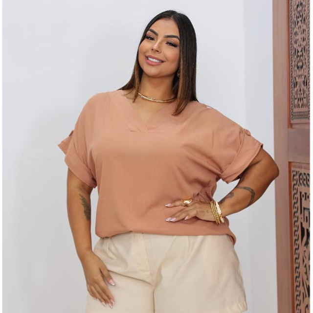| BLUSA FEMININA PLUS SIZE GOLA V - TECIDO VISCOLINHO MODA SOCIAL EL... este produto | R$ 45,90 | — | 4.9/5 | 8 |