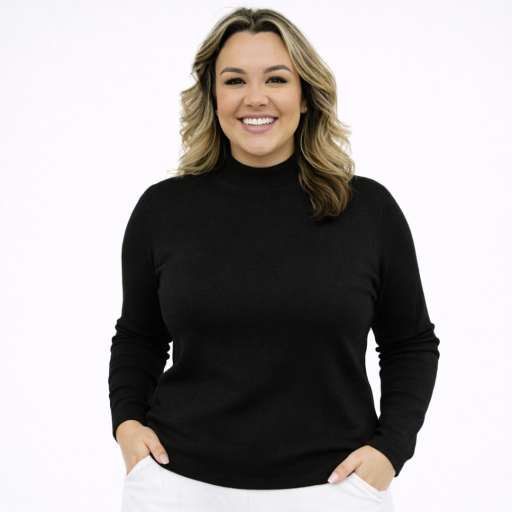 Blusa Feminina Plus Size Manga Longa Básica Casual com Gola em Lanzinha Elegante Confortável A Blusa Feminina Plus Size de manga longa em lanzinha é perfeita para quem busca elegância, conforto e versatilidade no dia a dia. Com modelagem mais ajustada que valoriza o corpo, ela combina muito bem em composições com casacos, cardigans, blazers e coletes, criando uma variedade de looks estilosos para diversas ocasiões. ⚠️ ATENÇÃO: CONSULTE A TABELA DE MEDIDAS! Modelagem mais ajustado ao corpo, confira a tabela de medidas para o caimento perfeito. Dica: Se preferir mais soltinha compre 1 tamanho maior. ✅ Você Receberá: - 1 Blusa Feminina Plus Size Manga Longa com Gola ✅ Sobre o Produto ▪ Tecido: Lanzinha ✅ O que é Lanzinha? ▪ A Lanzinha é um tecido clássico e atemporal que nunca sai de moda e deixa qualquer look de inverno mais elegante! É muito usada na confecção de calças, vestidos, jaquetas, blazers. Tem um ótimo toque, quando as temperaturas caem, ninguém resiste ao conforto da textura quentinha e macia da lã. ✅ Tabela de Medidas TAMANHO G1 G2 G3 G4 BUSTO 94cm 98cm 102cm 106cm QUADRIL 94cm 98cm 102cm 106cm COMPRIMENTO 60cm 62cm 64cm 66cm COMP. MANGA 60cm 62cm 64cm 66cm Obs : Todas as nossas medidas estão em centímetros e já estão considerando a circunferência total da peça. 🚚 Envio Super Rápido
