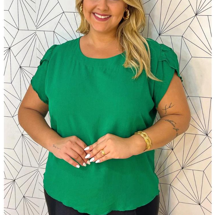 blusa feminina plus size manga tulipa verão dunas