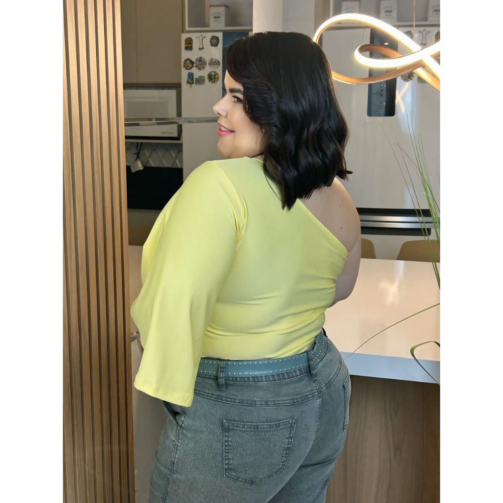 Blusa Feminina Plus Size Nula Manga Flare Suplex Premium Um Ombro Só Elegante Casual