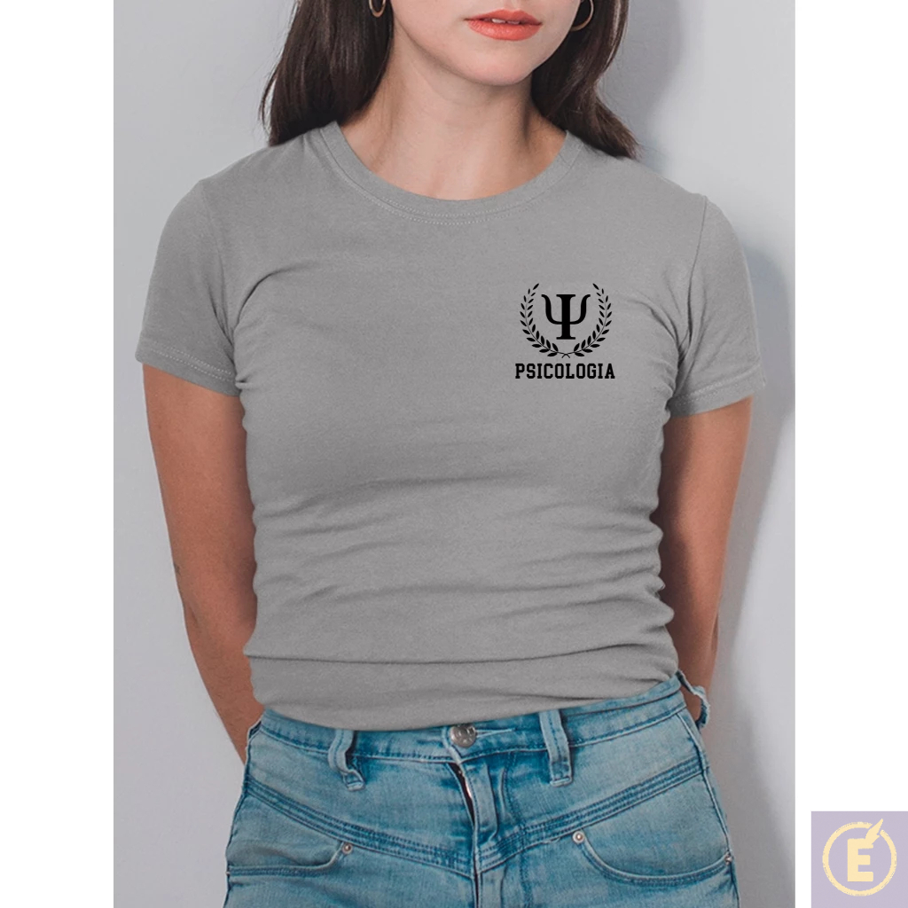 Blusa Feminina Psicologia Baby Look Estampada Faculdade no Peito com Ramos e Brasão 100% Algodão