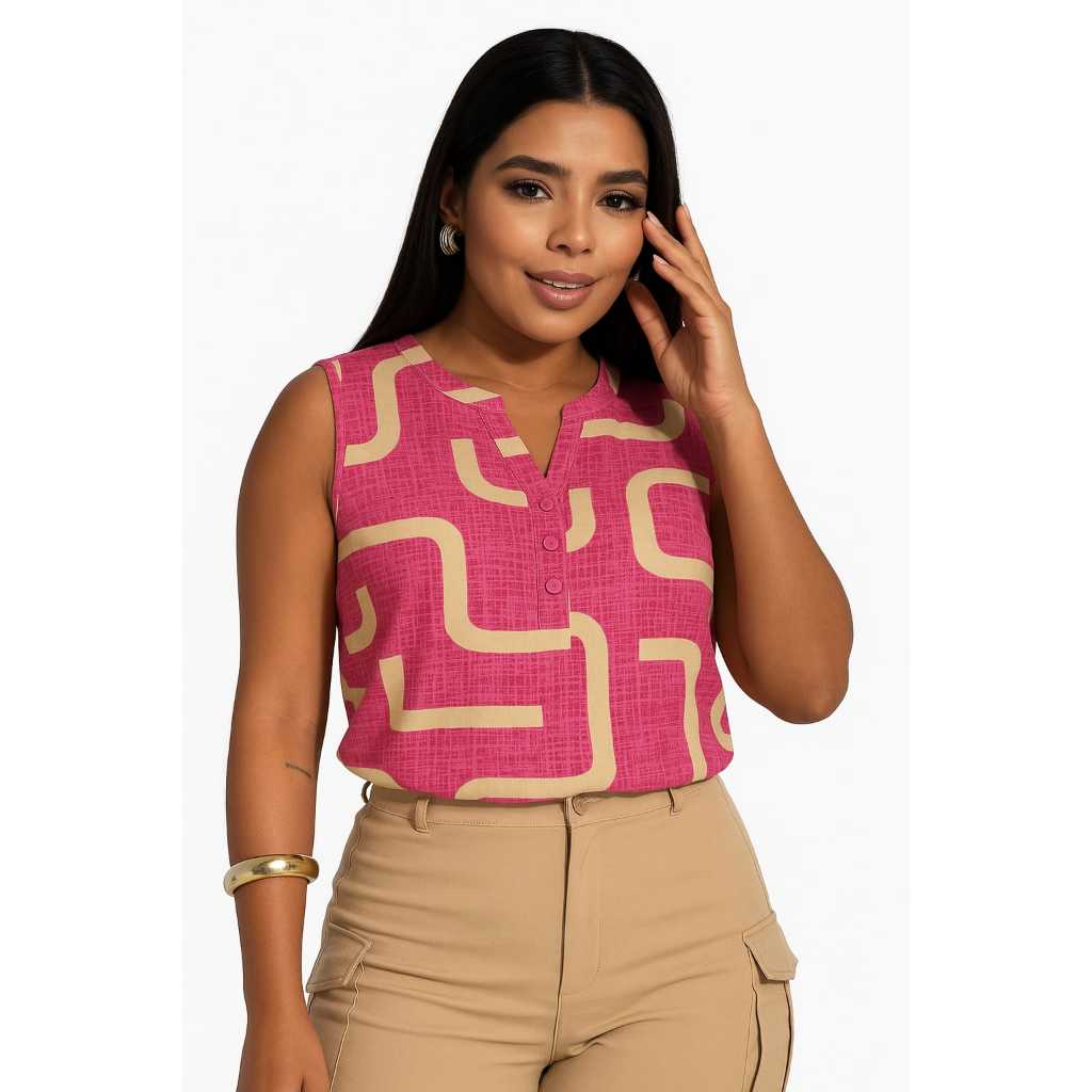 📝 Descrição otimizada ✨ Blusa feminina regata estampada sem manga, perfeita para quem procura conforto, estilo e versatilidade em todas as ocasiões. ✔️ Design moderno: estampa exclusiva que valoriza qualquer look ✔️ Modelagem confortável: caimento soltinho que se adapta bem ao corpo ✔️ Tecido leve e fresco: ideal para o dia a dia ou para combinar em produções de trabalho ✔️ Versátil: pode ser usada com shorts, calça jeans, alfaiataria ou saia 📏 Tabela de medidas (tiradas na peça aberta, em centímetros): M – veste 38/40 ---Busto 100 | Cintura 98 | Comprimento 64 G – veste 42 -- Busto 106 | Cintura 104 | Comprimento 66 GG – veste 44 -- Busto 109 | Cintura 107 | Comprimento 68 🚚 Envio imediato – produto em estoque, pronto para despacho 🧼 Cuidados de lavagem: lavar à mão ou em ciclo delicado, não usar alvejante e secar à sombra para maior durabilidade da peça 💡 Dica: Confira suas medidas antes de comprar para garantir o tamanho ideal e evitar trocas. OBS; MEDIDAS TIRADAS EM PEÇA SOLTA MARGEM DE ERRO DE 1 CM PARA MAIS OU PARA MENOS CONFIRA SUAS MEDIDAS .