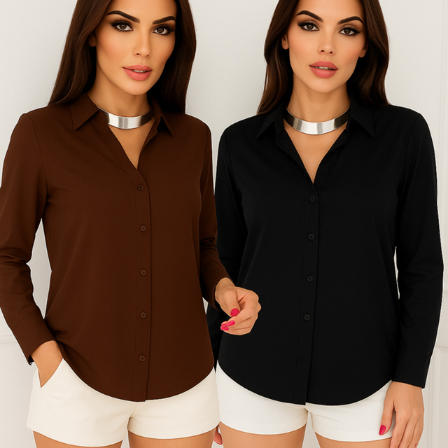 Blusa Feminina Social Manga Comprida Lisa Versátil Para Escritório e Dia a Dia