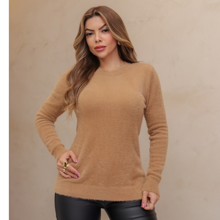 Blusa Feminina Suéter Pelinho Grosso Gola Redonda Inverno 3RD SD2013