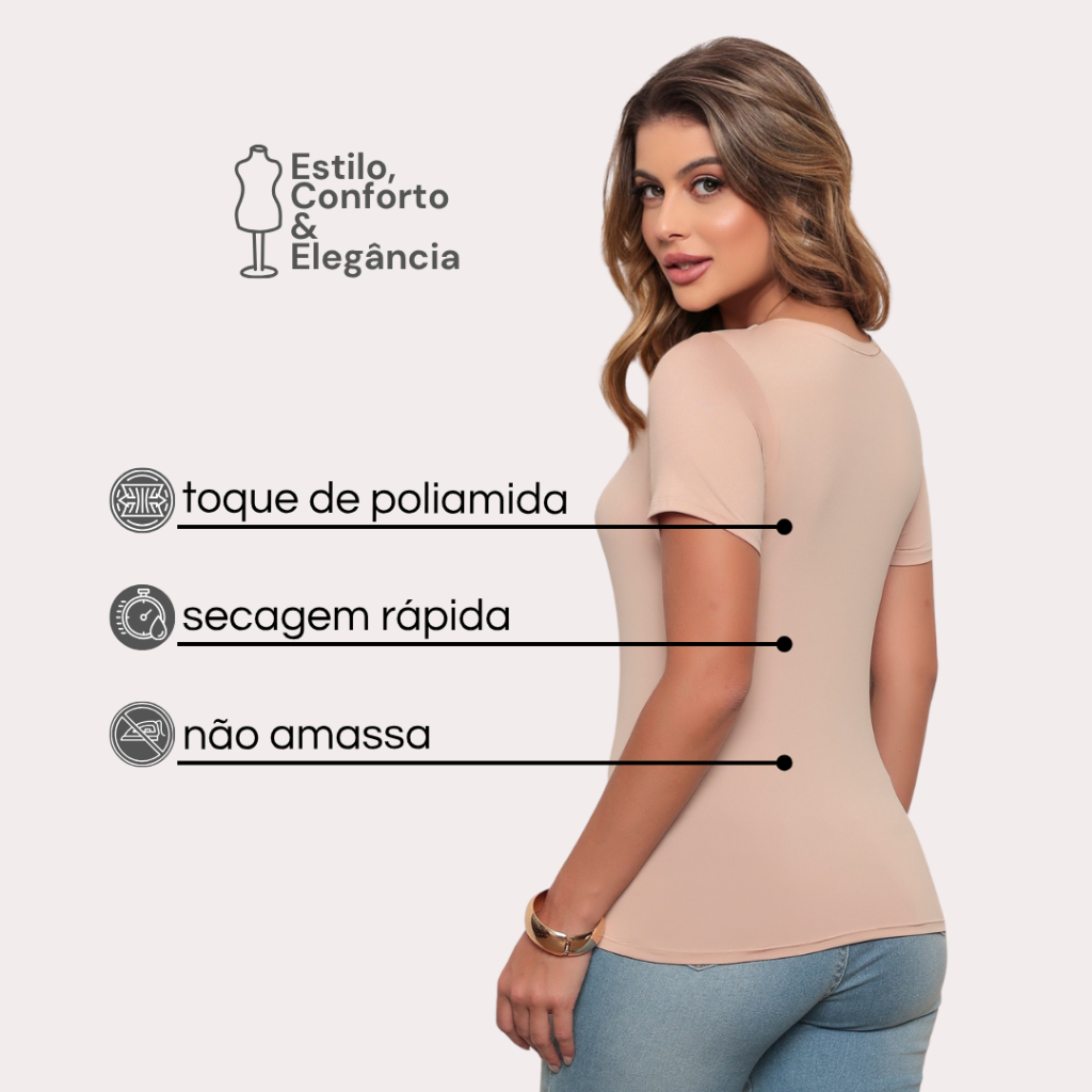 Blusa Suplex de Malha de altíssima qualidade com alta durabilidade e muito confortável. > Confeccionada em suplex premium, uma malha levinha e de toque super macio. > Ideal para completar seu visual com elegância e conforto. > Modelagem RETA com caimento mais justo ao corpo. > Possui decote quadrado e comprimento regular. > Possui a maga curta justa ao braço, confortável, despojada de um tecido leve, com muita elasticidade básica para seu dia a dia completando mais um look no seu guarda-roupa. > ELEGANTE > DECOTE QUADRADO > EXCELENTE ELASTICIDADE >TOQUE DE POLIAMIDA > SUPLEX PREMIUM OBS: Não acompanha os acessórios. Informações Complementares: - Composição: 92%poliester 8% Elastano (com TOQUE DE POLIAMIDA) - Acabamento premium - Modelagem justa ao corpo - Não marca e NÃO FICA TRANSPARENTE - VERIFIQUE A TABELA DE MEDIDAS Tabela de medidas: TAMANHO: P veste 36/38 BUSTO: 76-84 CM CINTURA:74-80 CM COMPRIMENTO:57 CM TAMANHO: M veste 40 BUSTO: 82-90 CM CINTURA:78-86 CM COMPRIMENTO:58 CM TAMANHO:G veste 42 BUSTO: 86-94 CM CINTURA: 82-90 CM COMPRIMENTO:59 CM TAMANHO: GG veste 44/46 BUSTO: 90-98 CM CINTURA: 84-92 CM COMPRIMENTO:61 CM TAMANHO: G1 veste 48/50 BUSTO: 92-100 CM CINTURA: 88-94 CM COMPRIMENTO:62 CM