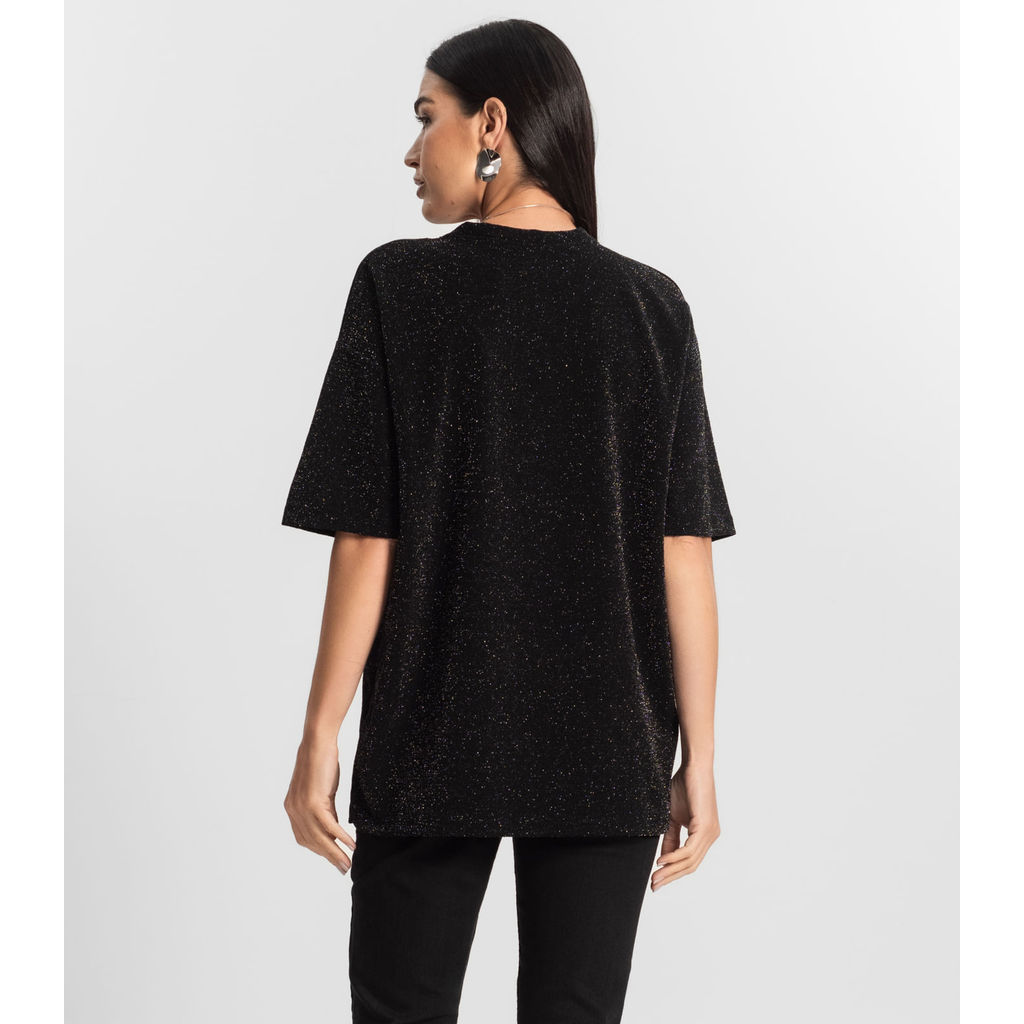 Blusa Feminina T-Shirt Over Rovitex, desenvolvida em Spandex Lurex, oferecendo elasticidade, leveza e um brilho sutil que agrega sofisticação. Possui modelagem ampla e alongada, proporcionando um visual descontraído e moderno, sem perder o conforto e decote redondo do mesmo tecido, garantindo harmonia e acabamento perfeito. Perfeita para composições casuais com um toque de elegância, seja com jeans, shorts ou peças mais ajustadas!