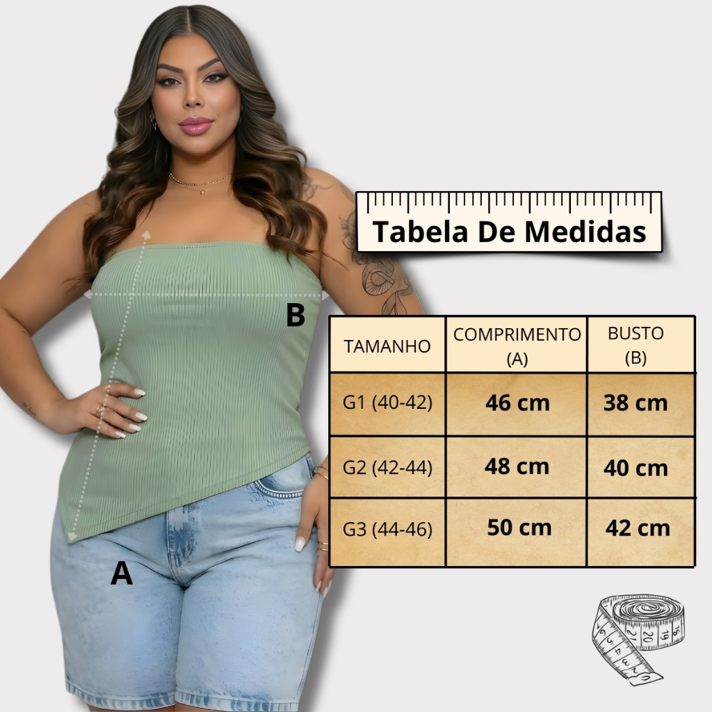 Blusa Tomara que Caia Assimétrica – Leveza e Estilo para o seu Verão A blusa feminina tomara que caia com abertura lateral assimétrica é a escolha perfeita para quem busca conforto absoluto e estilo durante a primavera e o verão. Com um design moderno e sofisticado, essa peça sem mangas e sem bojo garante um caimento natural, sendo a opção ideal para compor looks elegantes, seja no dia a dia ou em ocasiões especiais. Confeccionada em tecido canelado de toque suave, a blusa proporciona uma sensação leve e muito confortável sobre o corpo. Seu design reto valoriza a silhueta, garantindo total liberdade de movimento e frescor mesmo nos dias mais quentes. Uma peça versátil, indispensável para quem ama um estilo moderno, prático e cheio de charme. Por que você vai amar: Conforto Sem Bojo: Valoriza o natural e permite maior liberdade. Tecido Leve: Ideal para as altas temperaturas. Design Exclusivo: Abertura lateral assimétrica que traz um toque "fashionista". Versatilidade: Perfeita para compor desde looks casuais até produções mais sofisticadas. Sobre o Produto Bojo: Não possui (proporcionando um caimento leve e natural). Tecido: Canelado de alta qualidade. Modelo: Tomara que caia com abertura lateral. Composição: 96% Viscose - 4% Elastano. Cores: Disponível em cores lisas. Diferenciais Tecido resistente: Alta durabilidade. Praticidade: Não amassa, facilitando o seu dia a dia. Inclusividade: Disponível em numeração plus size, valorizando diferentes curvas.✨