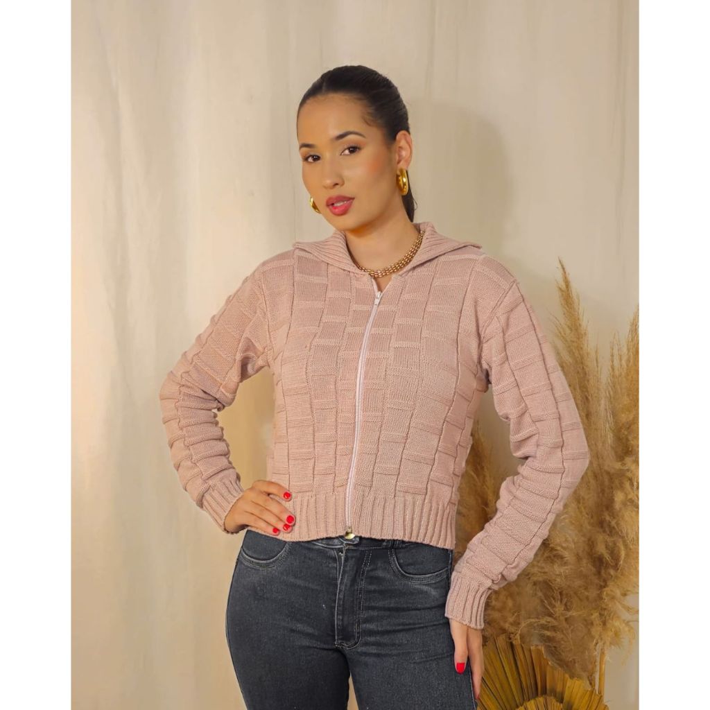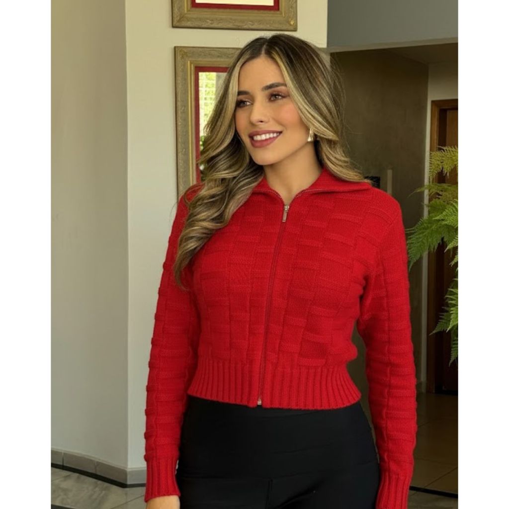 Blusa Feminina Tricot Modal Com Textura Em Relevo Com Zíper Casaquinho Moda Inverno Outono