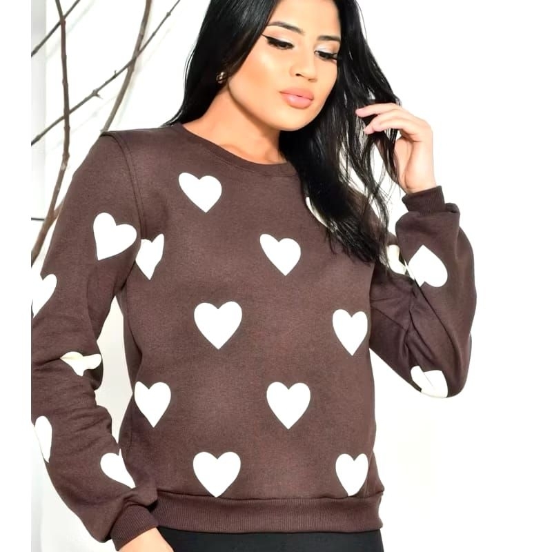blusa de moletom flanelado estampa coração disponível tamanho M-G-GG
