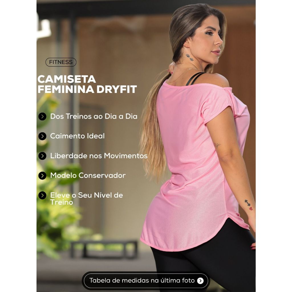 BLUSA FEMININA DRY FIT — LEVEZA, CONFORTO E ESTILO PARA SEUS TREINOS ✨ DESTAQUES RÁPIDOS ✅ Tecido Dry Fit leve e respirável que seca rápido ✅ Modelagem moderna com mangas curtas ✅ Toque macio e confortável sobre a pele ✅ Ideal para academia, corrida ou uso casual ✅ Liberdade total de movimento e frescor o dia todo ✨ DESCRIÇÃO A Blusa Feminina Dry Fit é perfeita para quem busca conforto e praticidade sem abrir mão do estilo. Confeccionada em tecido Dry Fit de poliéster, ela possui tecnologia que ajuda no controle da temperatura corporal, transportando o suor para fora e mantendo o corpo seco durante os treinos. Seu design leve e moderno permite liberdade total de movimentos, sendo ideal para academia, corridas, pedaladas ou atividades ao ar livre. Com caimento soltinho e toque macio, é uma peça indispensável para mulheres que valorizam o equilíbrio entre performance e bem-estar. 🚚 ENTREGA RÁPIDA — RECEBA HOJE MESMO! 📦 Entrega rápida em toda São Paulo: receba no mesmo dia ou no dia seguinte, conforme sua região. Para pedidos confirmados até 11h da manhã (segunda a sexta), o envio é realizado no mesmo dia! 🧵 COMPOSIÇÃO Tecido: Dry Fit de Poliéster Composição: 100% Poliéster 📏 TABELA DE MEDIDAS P (36/38): Busto 86–90 cm | Cintura 67–73 cm | Quadril 94–98 cm M (38/40): Busto 91–94 cm | Cintura 74–80 cm | Quadril 99–103 cm G (40/42): Busto 95–100 cm | Cintura 81–87 cm | Quadril 104–108 cm GG (42/44): Busto 101–104 cm | Cintura 88–94 cm | Quadril 109–113 cm 🛍️ LOJA FITMODA Referência em Moda Fitness, Lingerie e Pijamas que valorizam seu corpo e acompanham seu ritmo — do descanso ao dia a dia. 🛒 ADICIONE AO CARRINHO! ✨ Eleve seu treino para o próximo nível! ✨ Aguardamos o seu pedido com carinho!