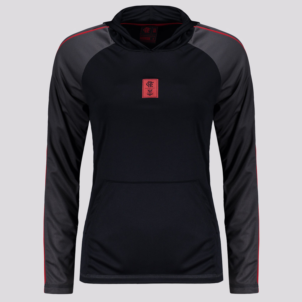 Composição: 100% Poliéster Cor predominante: Preto Bolsos: Um, estilo canguru Origem: Nacional Gênero: Feminino Escudo: Aplicado em patch Clube: Flamengo Manga: Longa Gola: Careca Capuz: Fixo Forro: Não Dimensões aproximadas (A x L): P: 58 x 43 cm M: 60 x 45 cm G: 62 x 47 cm GG: 64 x 49 cm