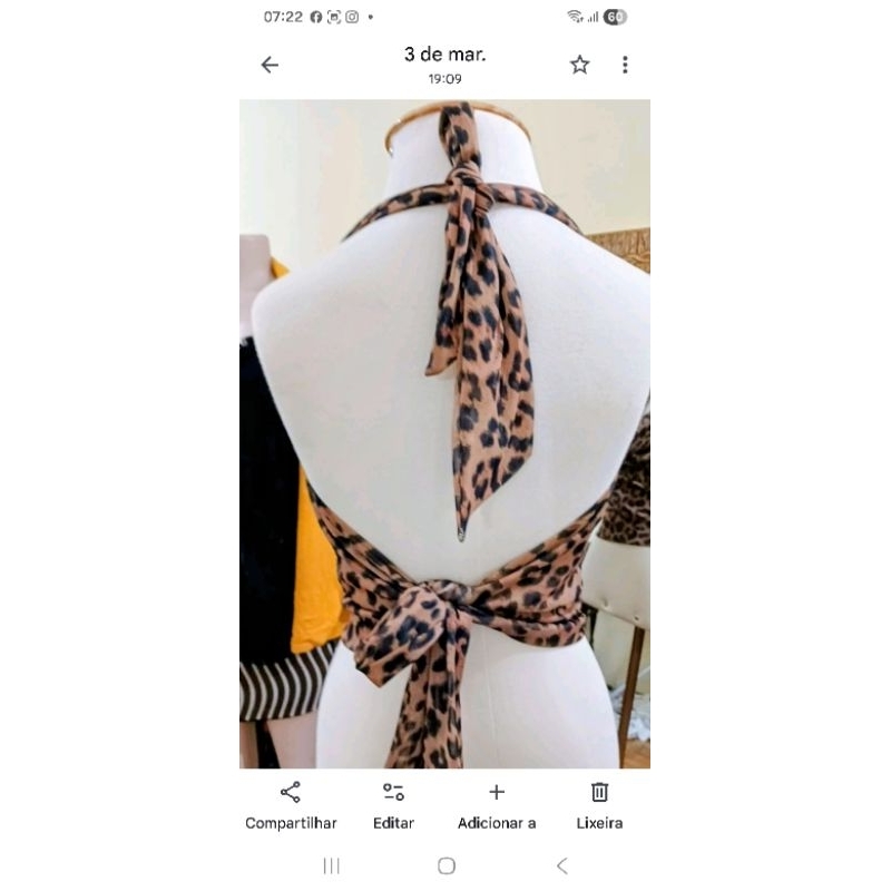 🔥 PODER, ESTILO E SENSUALIDADE NA MEDIDA CERTA 🔥 Nossa blusa em tule de malha com estampa animal print é aquela peça que transforma qualquer look em um visual poderoso e cheio de atitude. Leve, confortável e com caimento impecável, valoriza o corpo e deixa a produção ultra fashion. ✨ Decote drapeado que valoriza o colo ✨ Amarração nas costas super charmosa ✨ Tule de malha fresquinho e macio Perfeita para arrasar no look urbano, na noite ou naquele encontro especial. 🛒 Garanta a sua agora e sinta-se simplesmente irresistível! Estoque limitado!