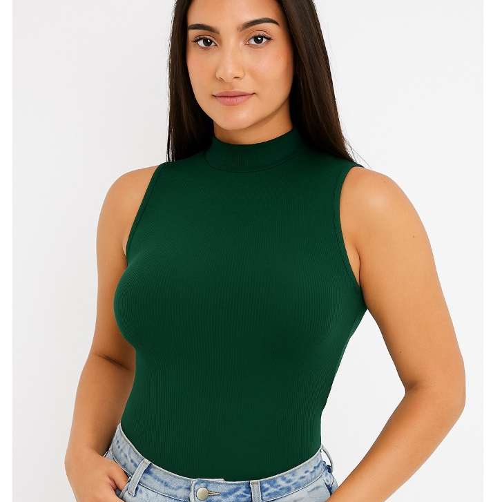 Blusa Gola Alta Básica Regata Malha Canelada Ribana