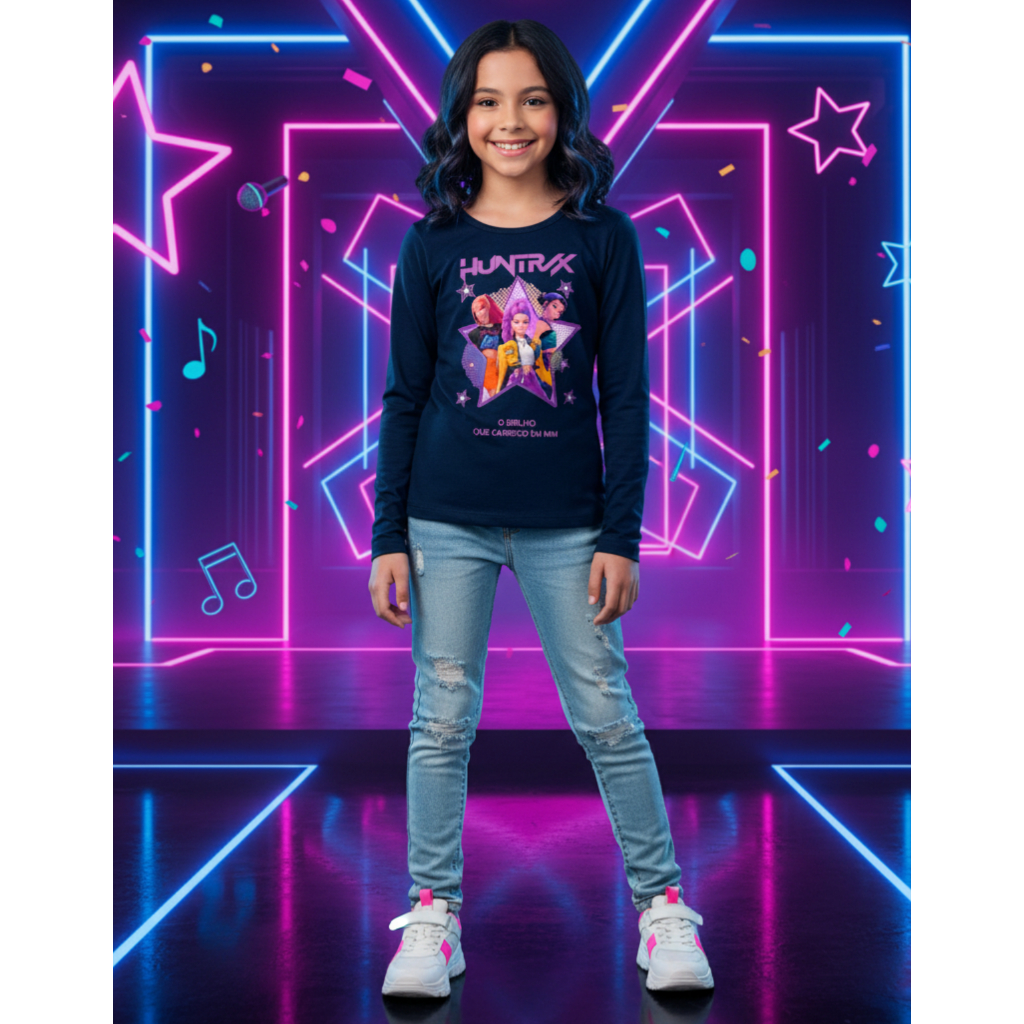 Blusa Infantil Guerreiras K-pop Huntrix Manga Longa 100% Algodão Ótima Qualidade
