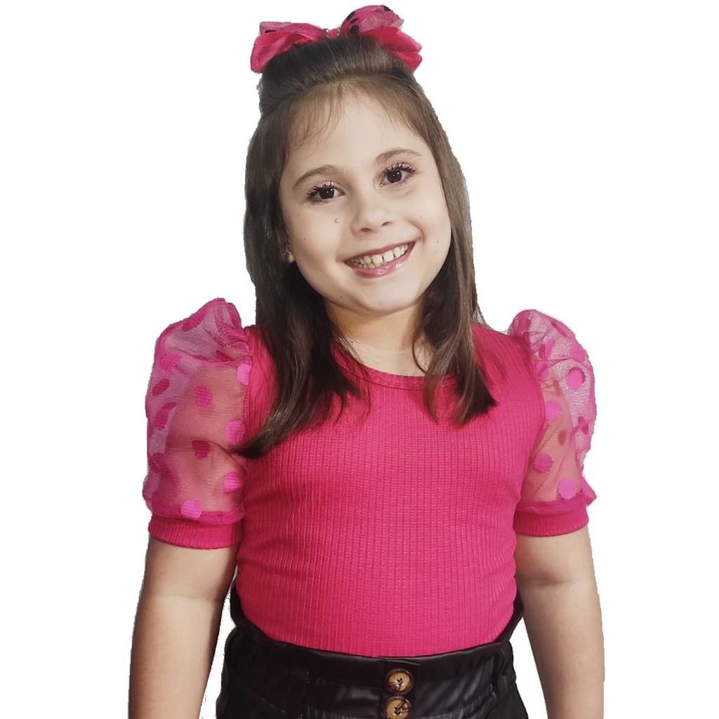 Blusa infantil manga curta bufante em tule moda mini diva blogueirinha