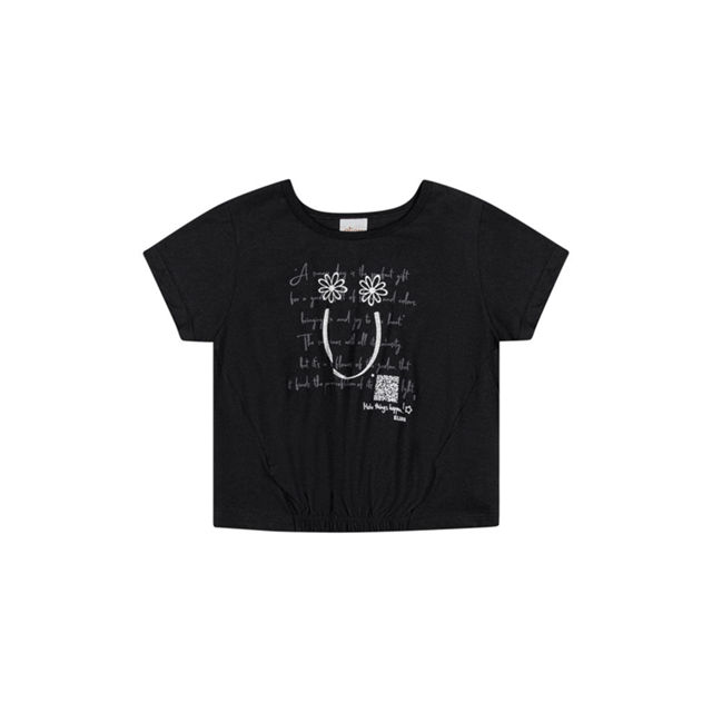 A Blusa Elian combina charme e conforto em uma única peça! Feita em meia malha, ela possui mangas curtas e elástico na barra, garantindo um toque de personalidade ao look. A estampa traz em destaque um rostinho formado por flores e os detalhes em glitter dão um toque delicado ao visual. Além disso, um QR Code estampado leva a uma playlist de músicas para aproveitar cada momento. Perfeita para compor looks modernos, é ideal para diversas ocasiões do dia a dia. Aposte nessa peça-chave incrível!Detalhes da peça: • Feito em meia malha • Possui elástico na barra • Estampa com rostinho e flores • Detalhes em glitter • Possui QR Code interativo levando a uma playlist • Ideal para o dia a dia