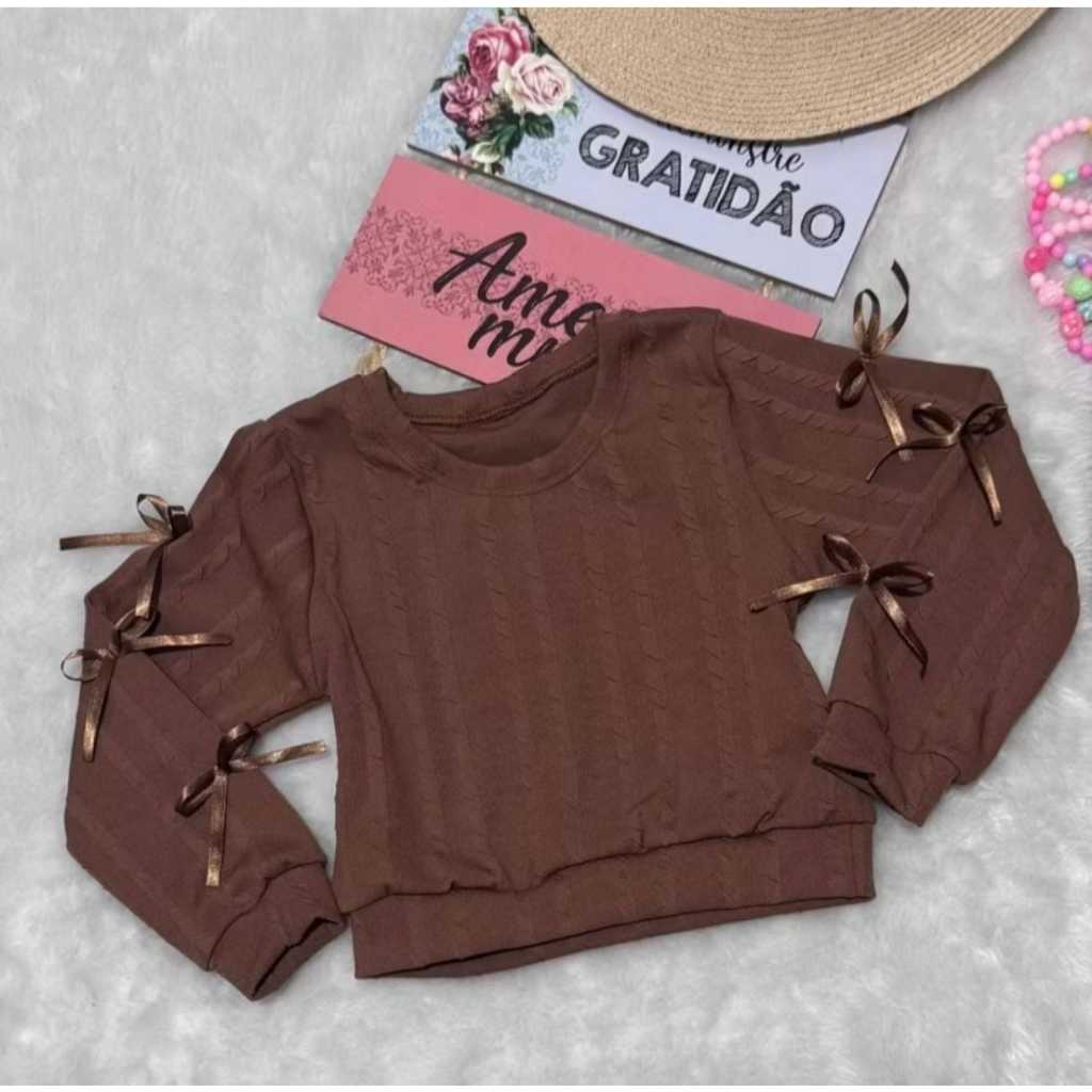 blusa infantil menina manga longa comprida lacinhos moda detalhe lacinhos frio inverno