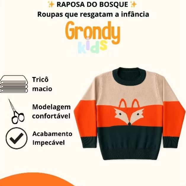 🔥 PROMOÇÃO POR TEMPO LIMITADO – APROVEITE! O suéter infantil de raposinha mais amado do inverno 🦊 Perfeito para deixar seu pequeno quentinho e estiloso nos dias mais fresquinhos 🍂 ✨ POR QUE ESSE MODELO É UM SUCESSO? ✔ Toque macio – não pinica ✔ Confortável para o dia todo ✔ Modelagem leve (não esquenta demais) ✔ Ideal para meia estação e dias mais frescos ✔ Estampa exclusiva e encantadora 🧵 FABRICAÇÃO PRÓPRIA Qualidade premium direto da fábrica 🚚 ENVIO IMEDIATO Produto pronta entrega – envio rápido para todo Brasil 📏 TAMANHOS Disponível do 2 ao 10 anos ⚠️ ATENÇÃO Devido à alta procura, algumas numerações podem esgotar rapidamente 💥 GARANTA AGORA O SEU COM PREÇO PROMOCIONAL!