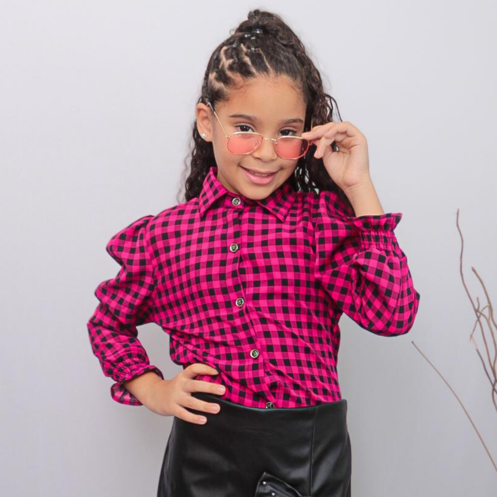 Blusa Infantil Xadrez com Botões e Punho de Elástico – Estilo e Conforto| São João Quadrilha Moda Bloguerinha Tendência