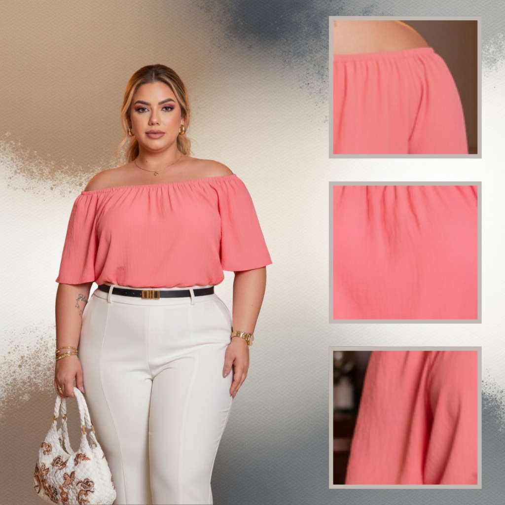 Blusa lisa plus size com mangas soltinha fresquinha confortável ombro a ombro chique cores lisas