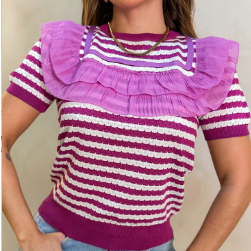 Blusa Listrada com Babado HQ651
