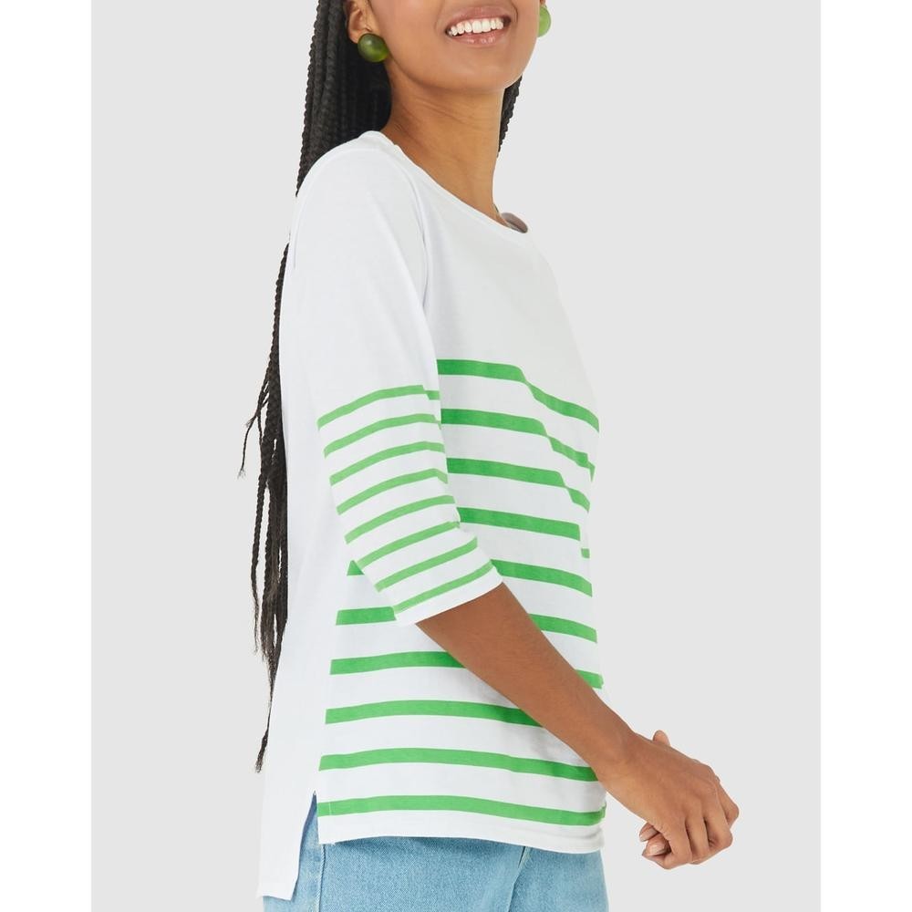 Blusa Listrada Feminina Manga 3/4 Em Algodão