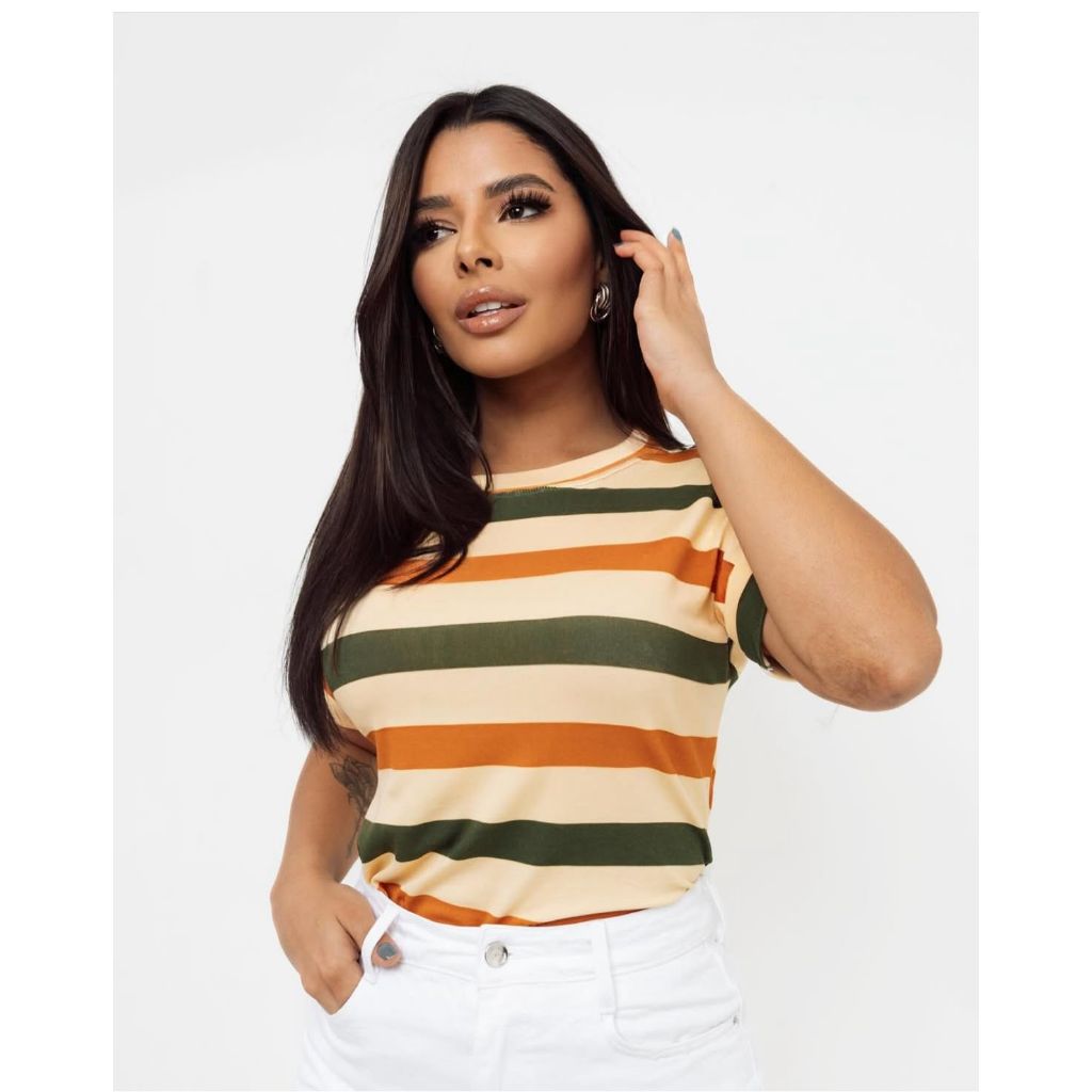 | Blusa Listrada Feminina Tshirt Manga Dobrada Gola Redonda Cores Ver... este produto | R$ 27,99 | — | 4.9/5 | — |
