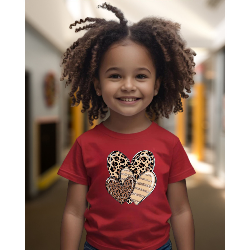 Blusa Manga Curta Infantil Menina em Algodão Premium Corações 2 ao 14