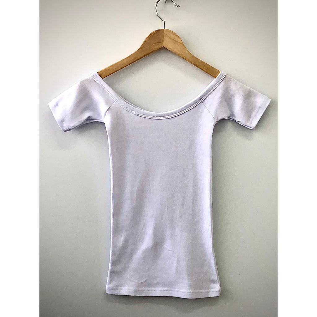 Blusa manga curta ombro a ombro BRANCA 96% algodão 4% elastano