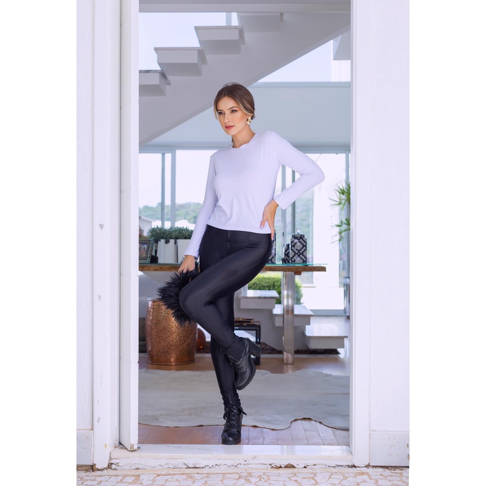 Produtos a pronta entrega para postagem imediata em até 24h ✓ Excelentes preços e ótima qualidade ✓ Fabricação própria. Feito com muito carinho e capricho ✓ Mais de 100 mil estrelinhas e avaliações positivas ✓ Você não vai se arrepender de ter escolhido a Moderna & Slim! Compre e arrase! - Blusa Manga Longa Meia Estação Feminina Viscolycra: Confeccionada em viscose com elastano. Modelo de manga longa. A blusa de manga longa é perfeita para compor looks em um tipo de clima ameno, conhecido como meia estação. Em tecido de excelente qualidade, essa blusinha proporciona um ótimo conforto. Peça utilizada frequentemente em casa, trabalho ou lazer por tratar-se de uma peça versátil. - Importante: Blusa manga longa, disponível nos tamanhos PMG. Selecione o tamanho desejado ao seu carrinho e faça sempre a conferência dos itens. Com o pedido finalizado, não é possível alterar informações como, por exemplo, itens escolhidos, tamanho ou cor. A equipe operacional, não tem acesso ao chat, portanto, não é possível modificações. - Medidas aproximadas, sem esticar o produto: Tamanho P - Largura 80 cm, Comprimento 51 cm, Busto 86, Manga 52 (veste 36) Tamanho M - Largura 84 cm, Comprimento 52 cm, Busto 88, Manga 52 (veste 38) Tamanho G - Largura 88 cm, Comprimento 53 cm, Busto 92, Manga 52 (veste 40 e dependendo do biótipo até 42) - Material: - Tecido: Viscolycra (tecido macio ao toque) - Composição: 96 % viscose e 4% elastano - Sem Bojo. Não fica transparente - Estampa: lisa - Cor: branco - Fotos dos anúncios: - As fotos e vídeos são reais. As modelos são contratadas pela nossa marca, portanto, as peças retratam fielmente os nossos produtos. Modelo Veste P: Altura: 1,73 | Busto: 88cm | Cintura: 70cm | Quadril: 90cm | Manequim: 38
