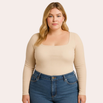 BLUSA MANGA LONGA TENDÊNCIA PLUS SIZE DECOTE QUADRADO RIBANA ELEGANTE