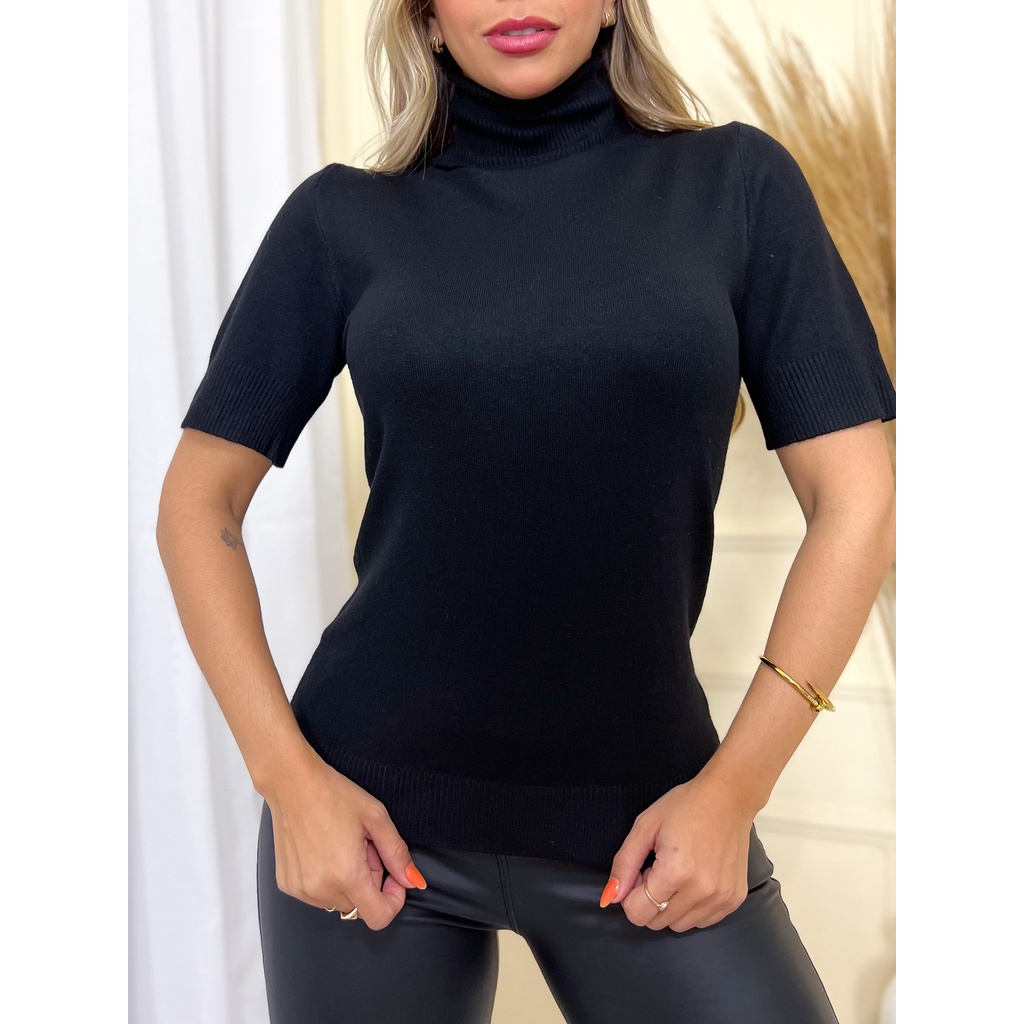 Blusa Modal de Lã Cacharrel Manga Curta Bufante Gola Alta 3RD SD345