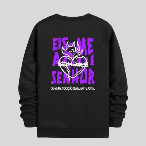 Blusa Moletom Gola Careca Eis-Me Aqui Senhor Cristão Moda