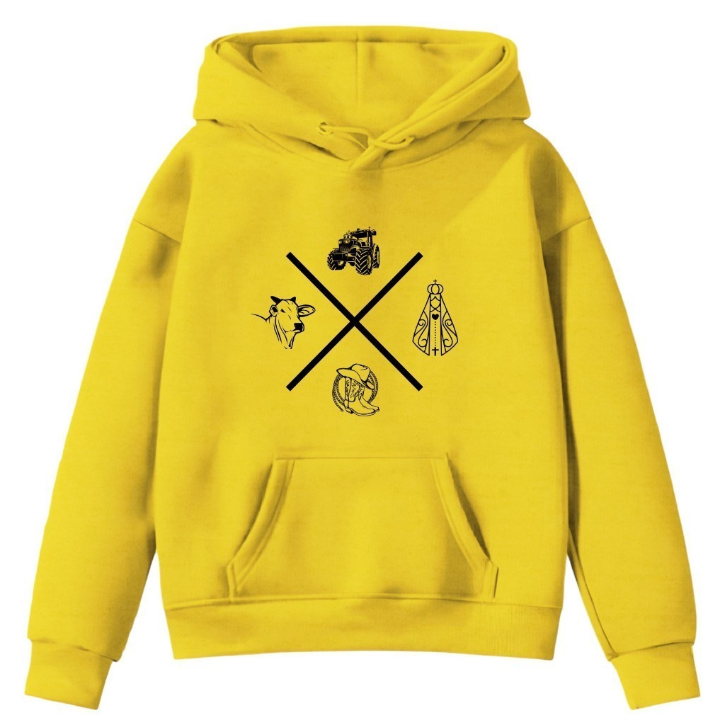 Blusa Moletom Infantil Com Bolso Canguru Nelore Cowboy USA Agro Country Farm Lazer Campo Capuz