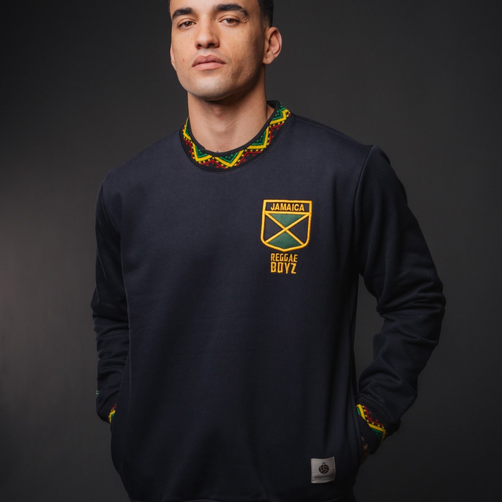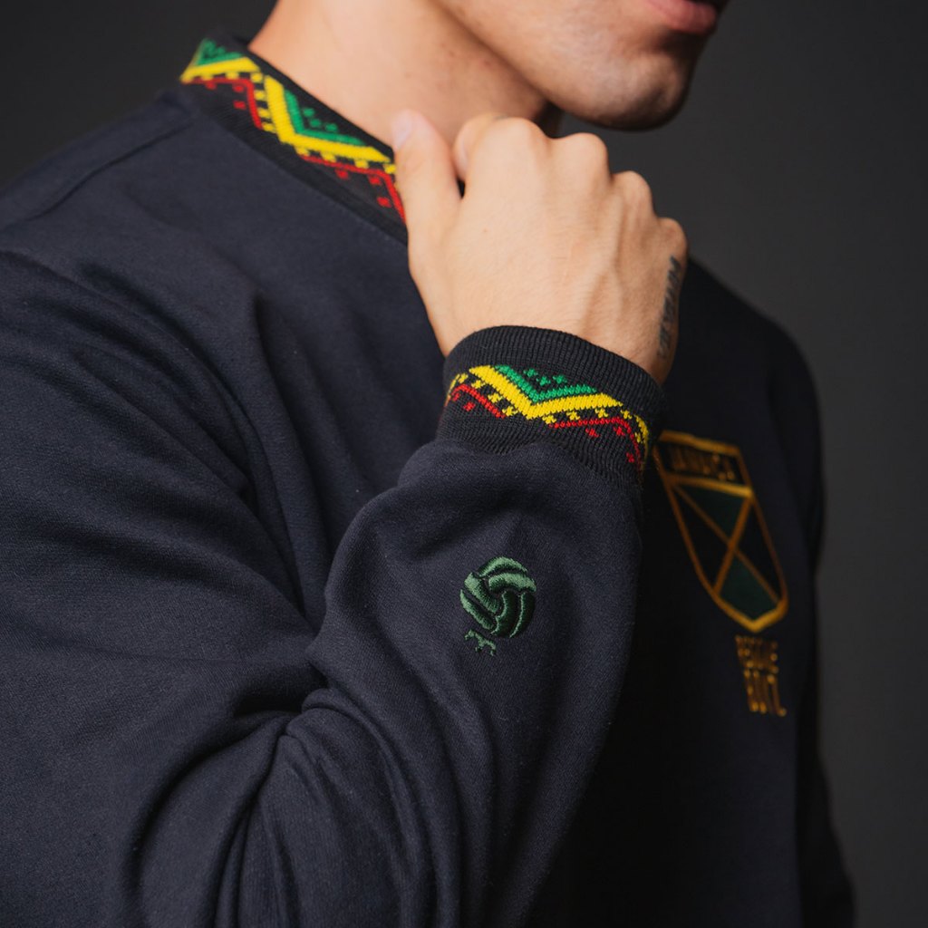 Moletom Jamaica Rasta, modelo clássico, proporciona estilo e conforto, produzida em tecido poliéster oferecendo melhor ajuste ao corpo, toque confortável e macio para enfrentar os dias frios. Estilo retrô com gola em ribanas e bolsos laterais, ideais para guardar pequenos objetos com segurança. Uso casual indicado para momentos de lazer e ir ao estádio. _ Características: - Gênero: Masculino - Indicado para: Dia a Dia - Estilo da Peça: Lisa - Capuz: Sem Capuz - Bolso: Com bolso laterais - Composição: 50% Algodão 50% Poliéster - Garantia do Fabricante: Contra defeito de fabricação - Origem: Nacional - Marca: Retrôgol - Escudo: bordado em alta definição Medidas Aproximadas: Largura x Altura - P (BR): 55 x 68 - M (BR): 59 x 71 - G (BR): 62 x 72 - GG (BR): 65 x 75 - EGG (BR): 67 x 77