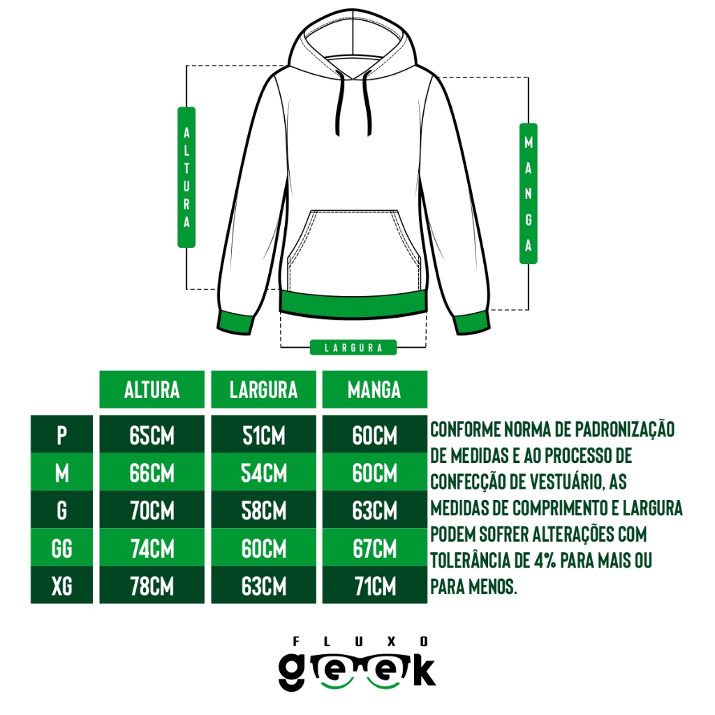 Blusa Moletom Canguru - Fluxo Geek Este Moletom é 75% algodão e 25% Poliéster é flanelado por dentro, possui bolsos canguru e capuz Nossas estampas são de tecnologia DTG, estampados direto na malha, com cores vivas e bem realçadas, não trinca, não desbota, grande durabilidade. Recomendamos lavar sempre a MÃO e secar sempre na SOMBRA, assim você terá uma peça com maior durabilidade. Sobre o envio: Fazemos o envio sempre em ate 1 a 2 dias úteis, após a aprovação de sua compra. TODOS TAMANHOS SÃO ADULTOS. Descrição dos tamanhos TAMANHO..............ALTURA............LARGURA........MANGAS P..............................65 CM...............51 CM..............60 CM M............................66 CM...............54 CM..............61 CM G.............................70 CM...............58 CM.............63 CM GG..........................74 CM................60 CM..............67 CM XG..........................78 CM................63CM...............71 CM Gostaríamos de fazer parte do seu dia a dia com você usando nossos lindos produtos, sempre com autenticidade e atualidades. Nós do Fluxo Geek estaremos sempre a sua disposição pós vendas, basta nos chamar no chat, obrigado e boas compras.