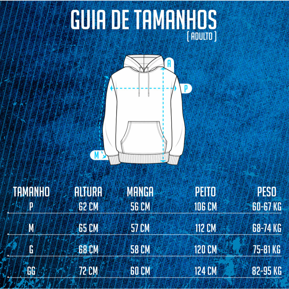 Olá, ficamos muito contentes pela sua visita :) => Blusa Moletom Canguru C/ Zíper com ótimo caimento no corpo devido sua especifica modelagem e material selecionado, além de seu interior ser constituído de material felpado para oferecer maior conforto e maciez. DETALHES DO MOLETOM : => Modelo: Moletom Canguru C/ Zíper unissex MASCULINO / FEMININO => Modelagem: Punhos e barras com ribana, Blusa aberta com Zíper => Disponível nos Tamanhos: P, M, G e GG. => Tecido: 75% Algodão e 25% de Poliéster => Grossura / densidade: 300 de Gramatura MEDIDAS : +++++ P ao GG +++++ (ALTURAxLARGURAxMANGAS) P) 65cm ALTURA / 53cm LARGURA / 56cm MANGAS. M) 68cm ALTURA / 56cm LARGURA / 59cm MANGAS. G) 71cm ALTURA / 59cm LARGURA / 62cm MANGAS. GG) 74cm ALTURA / 62cm LARGURA / 65cm MANGAS.
