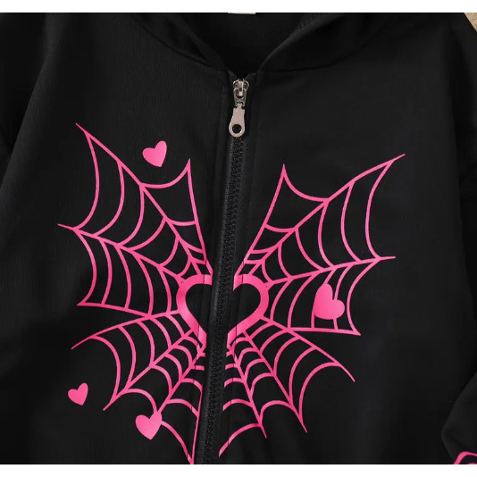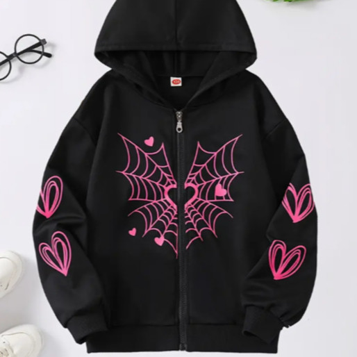 Blusa Moletom Ziper Feminina Moletom Canguru Teia Love Spider Coração Forrado Casual Bolsos Capuz
