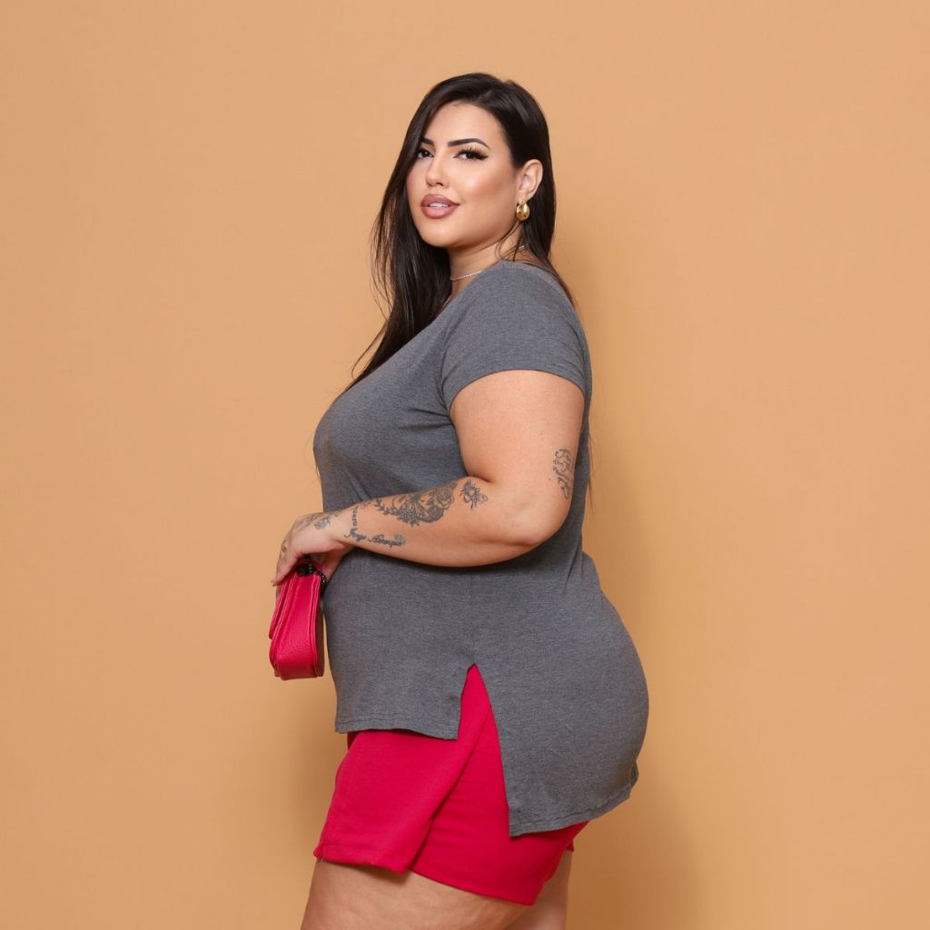 Blusa Mullet Plus Size fitness- T-shirt alongada tapa bumbum verão academia moda plus size sise