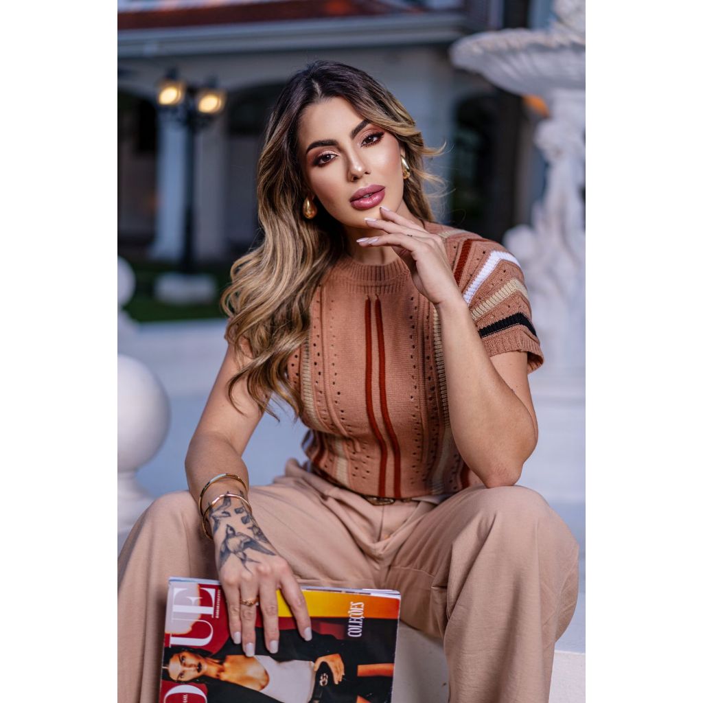 Blusinha Modal Listrada – Conforto e Estilo no Seu Dia a Dia! Nossa blusinha listrada é confeccionada com fio Modal, um tecido macio, leve e de toque suave – ideal para quem busca conforto com elegância. Tamanho único, veste do 36 ao 42 com caimento impecável. Medidas da peça: Comprimento: 45cm Largura: 30cm Peça versátil, perfeita para compor desde looks casuais até os mais sofisticados. **Cuidados com sua peça de tricot: Lave à mão, com sabão neutro e água fria; Não torça a peça – apenas pressione suavemente para retirar o excesso de água; Seque na horizontal, à sombra, sobre uma superfície plana; Evite pendurar, pois o peso da água pode deformar o tricot; Não utilize alvejantes ou secadora; Guarde dobrada, nunca pendurada, para manter o formato original. ✅ Produto à pronta entrega 📦 Envio em até 24 horas após a confirmação do pedido