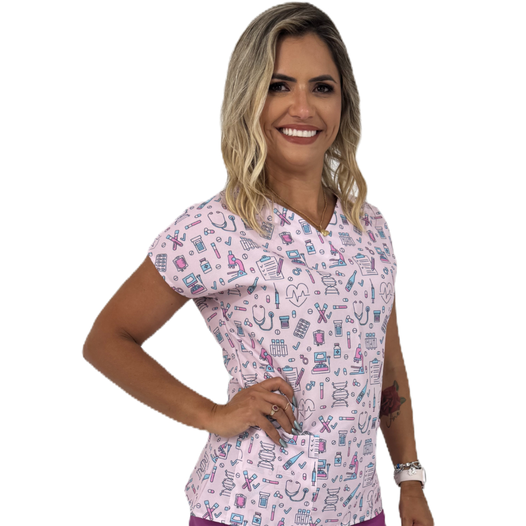 Blusa Pijama Cirúrgico Estampado - Scrub Hospitalar Enfermagem Medicina
