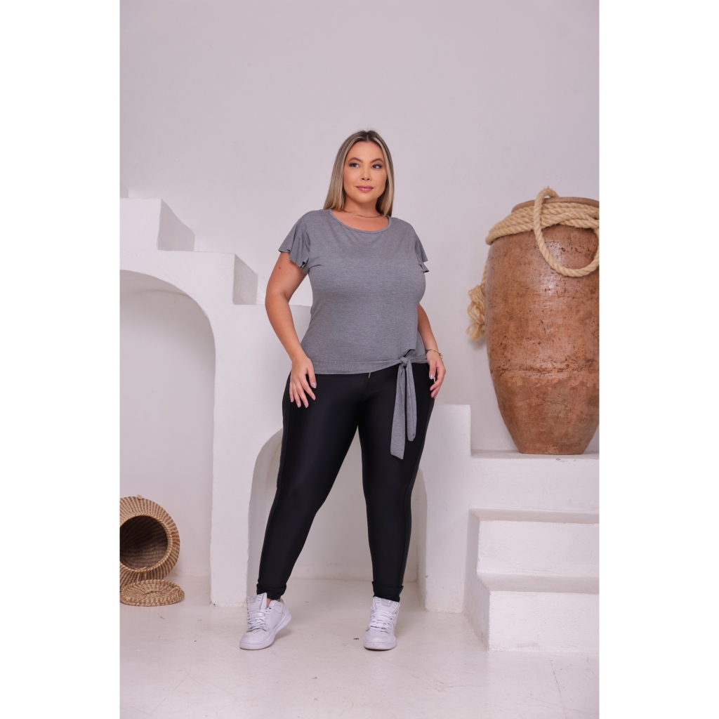 BLUSA PLUS SIZE FEMININA BASICA SOLTINHA CASUAL ELEGANTE TENDÊNCIA MODERNA DETALHE AMARRAÇÃO MANGA SOLTINHA REF 501