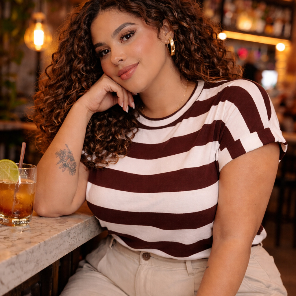Blusa Plus Size Feminina Listrada Manga Curta Soltinha Básica Tamanho 46 48 50