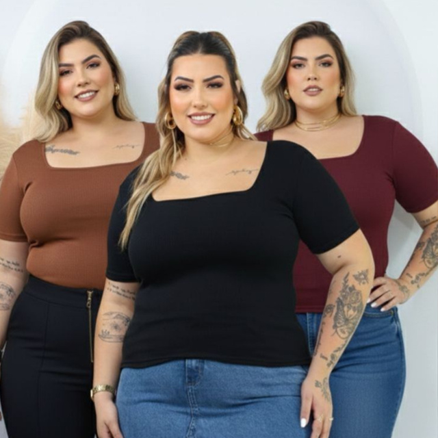 Conforto e Segurança Garantida Sua confiança é nossa prioridade. Por isso, utilizamos a Ribana Premium de alta elasticidade e forro no busto, que foi desenvolvida para oferecer o caimento ideal na Moda Plus Size. Tamanho Único Inteligente: Veste perfeitamente do 44 ao 54 sem apertar, esticando o necessário para se adaptar às suas curvas. Fim da Transparência: O forro interno no busto elimina a preocupação com transparência, garantindo que você se sinta 100% segura. Visual Comprovado: Nossas modelos vestem tamanho 50 nas fotos. O tecido demonstra sua adaptabilidade e conforto em todos os movimentos. Ficha Técnica Essencial Modelo: Blusa em Ribana Gola Quadrada (Manga Curta). Temos uma paleta de cores completa e vibrante para você montar qualquer look. CORES DISPONÍVEIS: Neutras: Nude, Preto, Branca, Cinza e Marrom. Vibrantes/Tons de Inverno: Vermelho, Vinho e Amarelo. Tons Pastel: Rosa Bebê, Azul Bebê e Lilás.